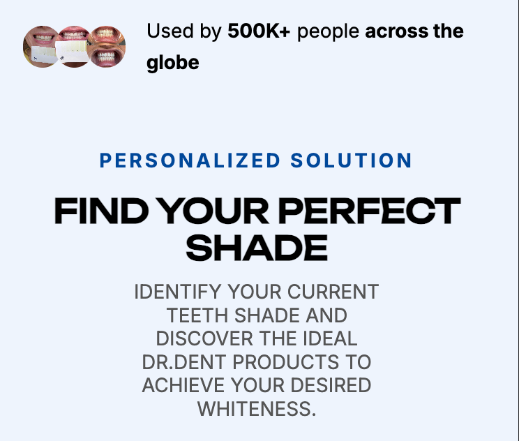 Identify your current teeth shade and discover the ideal DR.DENT products for your whitening journey.